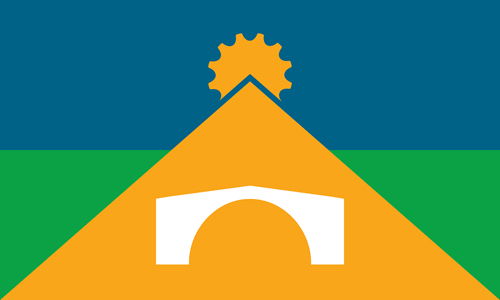 The Telford flag represents the iconic Ironbridge, a sun/cog as a nod to the Borough’s industrial heritage and the colour green to represent the many wonderful green and opens spaces available.